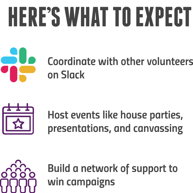 You just joined a national team of volunteers building grassroots power in communities across America! Meet the community and start taking action right now on Slack. set up my slack account join or host an event I'd rather give I prefer online