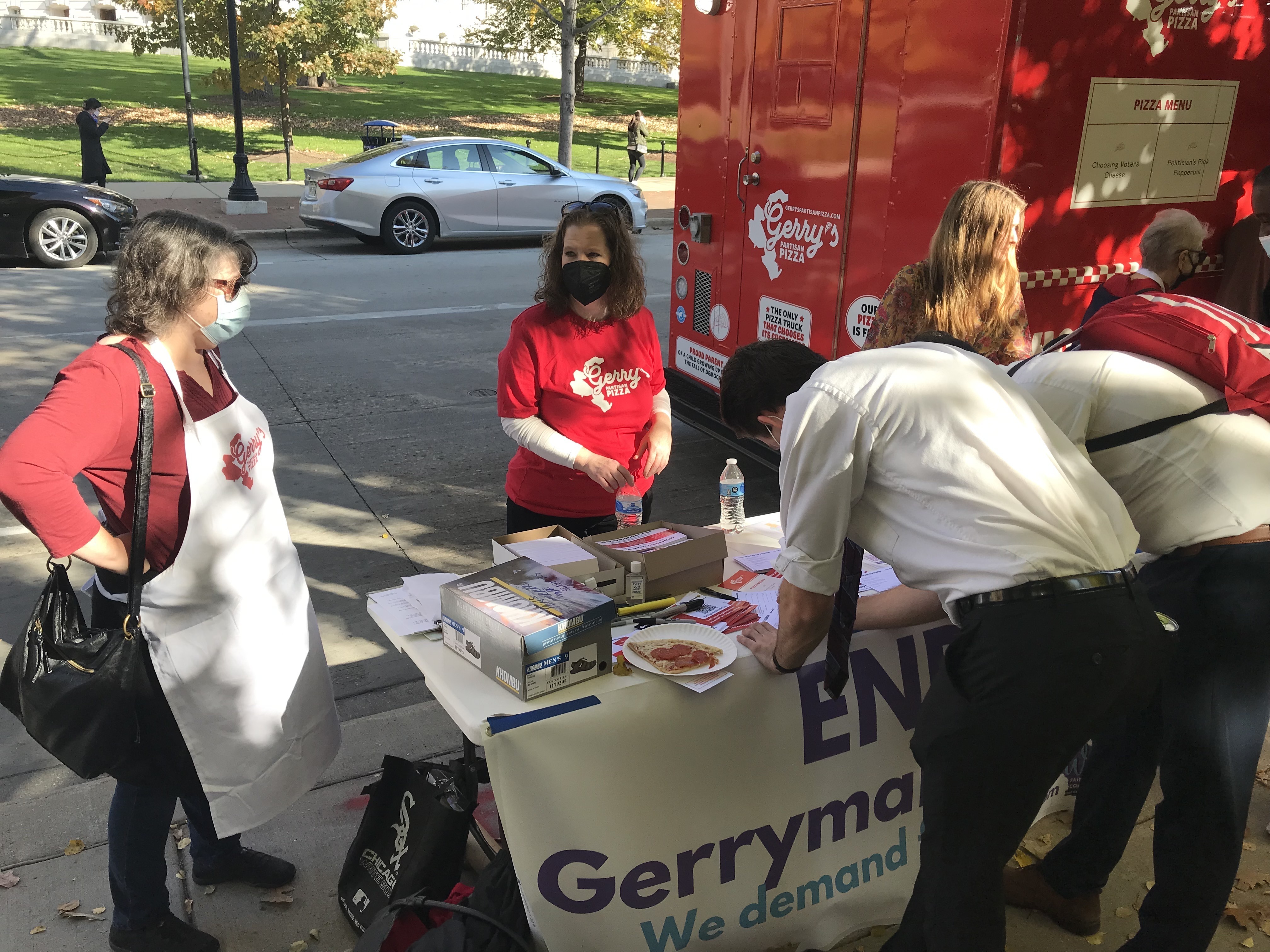 Overall, we engaged over 60 volunteers and had over 200 others pledge to take action for fair maps. Highlights included submitting dozens of letters to the editor by volunteers; serving over 300 free slices of “gerrymandered” pizza to educate the public about the issue in Madison and Appleton; distributing 500 yard signs in support of putting voters over politicians; organizing teachers, small business owners, faith leaders and veterans to sign on to letters asking for fair maps; and coordinating and participating in over 16 anti-gerrymandering rallies across Wisconsin on a bitterly cold day in January.